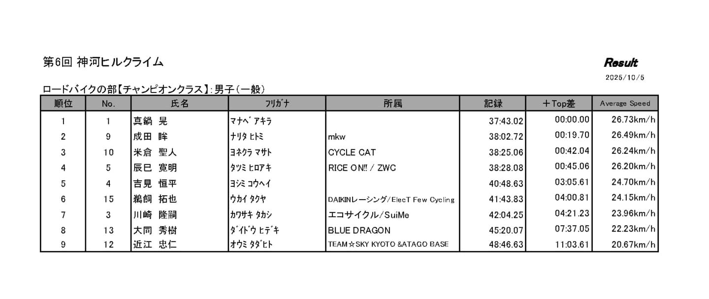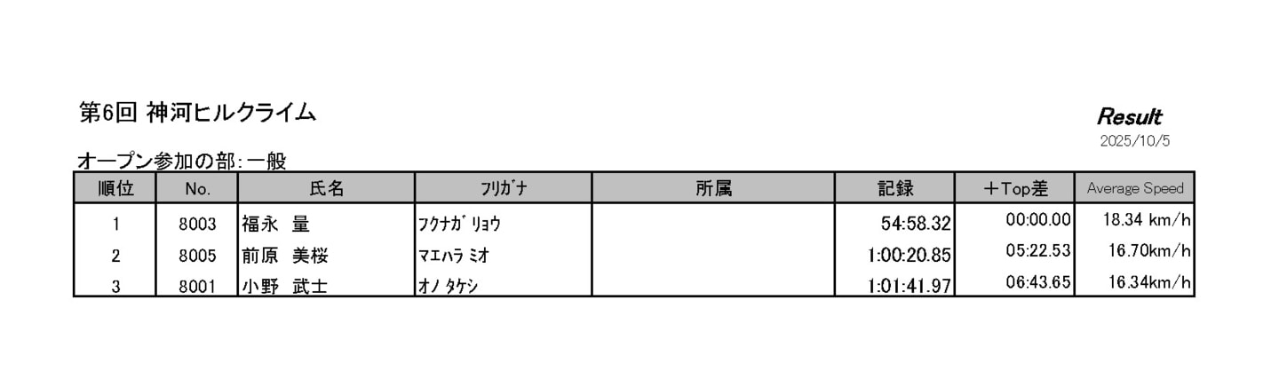 ■神河ヒルクライムは各競技団体等に加盟した大会ではありません。(富士ヒルクライムへの出場枠はありません)