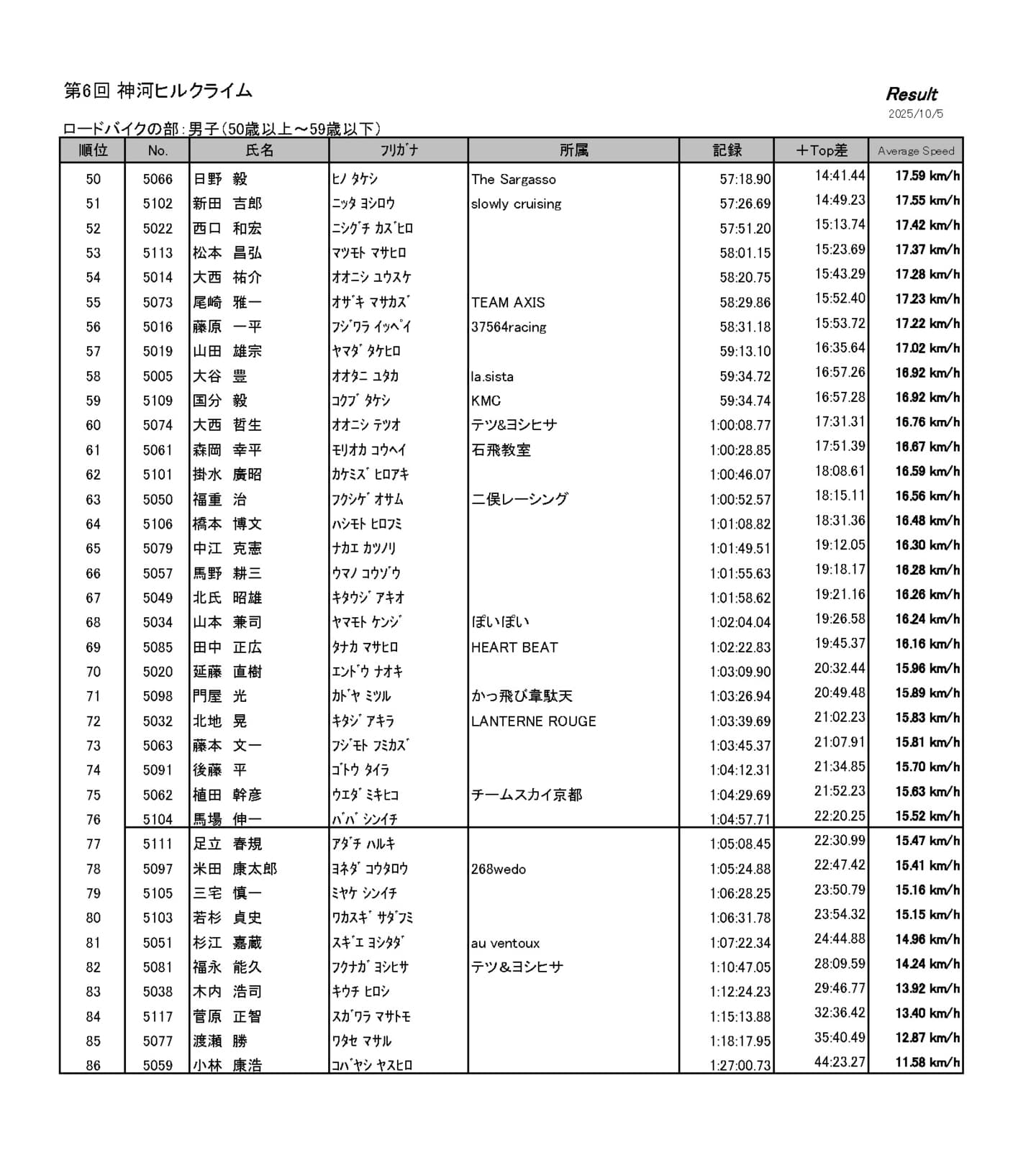 ■スタートは1分間隔でカテゴリー毎(単位)でスタートします。1組目スタート[7:30]、1 分後に次の組がスタートします。タイム計測開始のこっとん亭前とゴール地点にて計測し、個々のネットタイムで順位を出します。ゴールライン入線順位が着順ではありません。