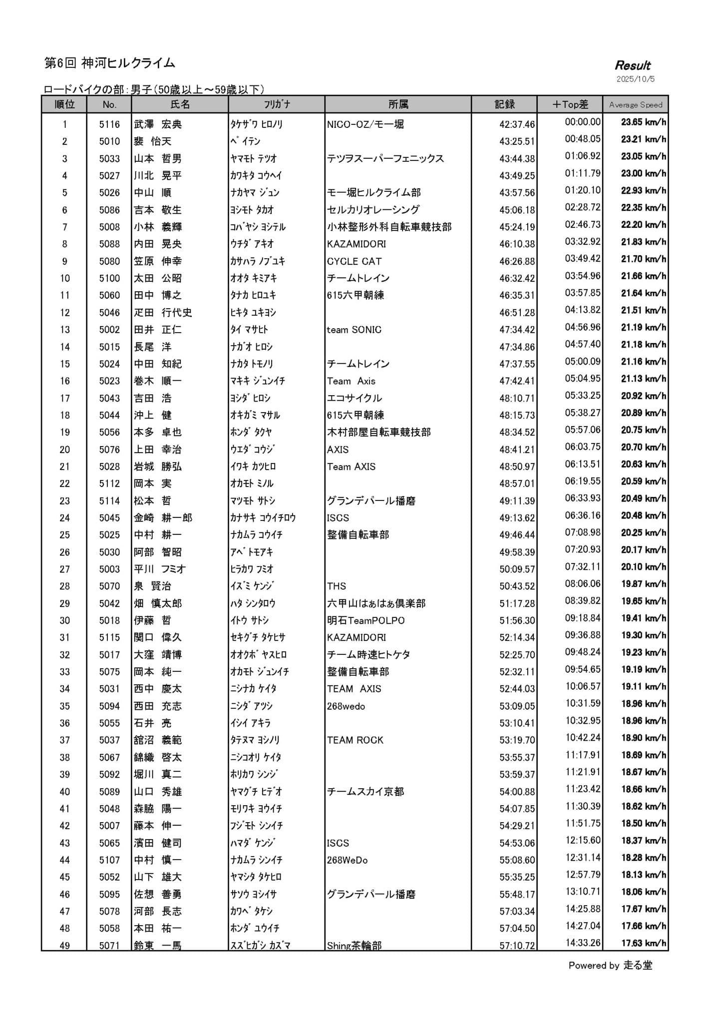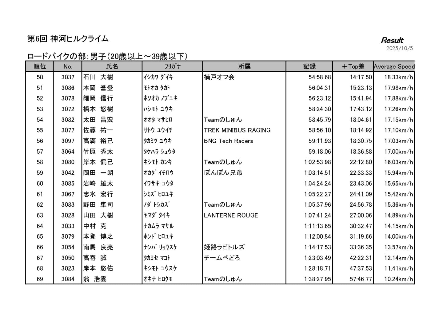 ■スタートは1分間隔でカテゴリー毎(単位)でスタートします。1組目スタート[7:30]、1 分後に次の組がスタートします。タイム計測開始のこっとん亭前とゴール地点にて計測し、個々のネットタイムで順位を出します。ゴールライン入線順位が着順ではありません。